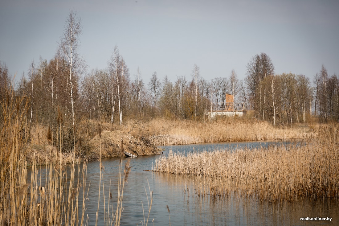 На довольно большой территории — заброшенные советские постройки, затопленные карьеры, густые кусты и высокие деревья — завораживающие «чернобыльские» декорации. Местные говорят, на месте бывшего производства уже как минимум лет пять ничего не происходит, а сам завод и вовсе закрылся в бородатые времена.