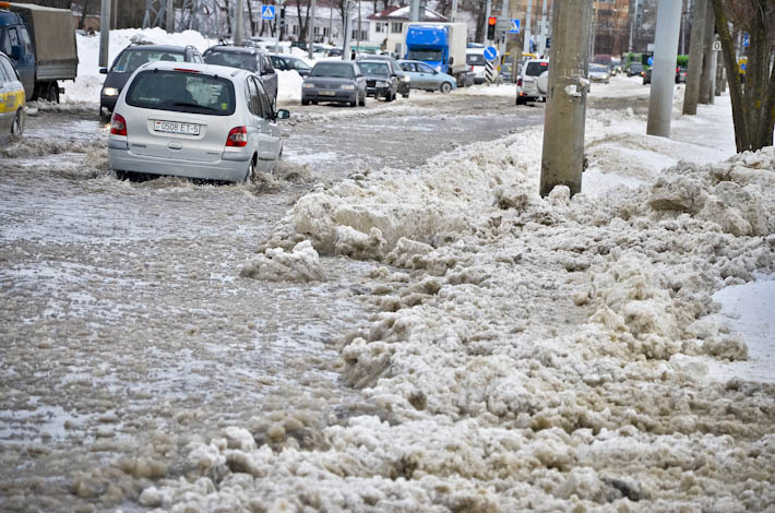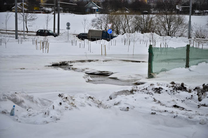 К снежному ЧП в Минске добавилось еще одно — на этот раз водное. На улице Горецкого прорвало трубу. И пока все пытаются бороться с последствиями «Хавьера» и помогают людям, застрявшим с авто за городом, в столице «поплыли» автомобили и автобусы.