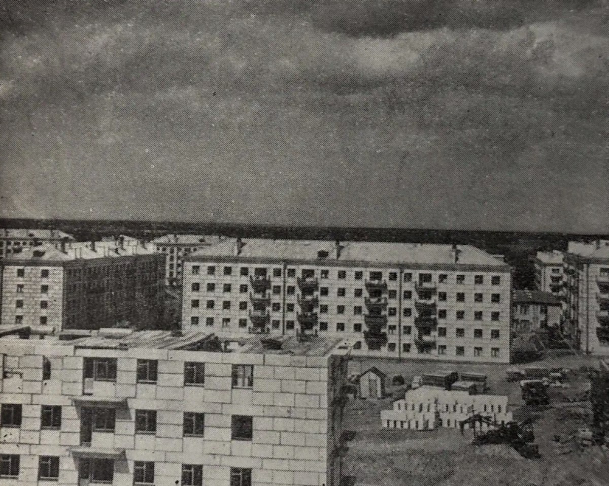 31 июля 1957 года вышло Постановление ЦК КПСС и Совета министров СССР «О развитии жилищного строительства в СССР», вслед за которым вскоре последовали аналогичные документы республиканских ЦК и Совминов. Согласно этим документам жилищное строительство в огромной стране должно было быть в короткие сроки коренным образом перестроено. Во-первых, ставилась задача резкого увеличения объема возведения жилья, во-вторых — партия провозгласила постепенный отказ от так называемых коммуналок с переходом к принципу «Каждой семье — отдельную квартиру». Наконец, в-третьих, все это должно было сопровождаться максимальным снижением стоимости строящегося жилья за счет его концентрации на больших площадях и широкого использования в строительстве индустриальных методов. На фото — первый в республике крупнопанельный жилой дом на 30 квартир на ул. Калинина, построенный в 1956 (!) году.