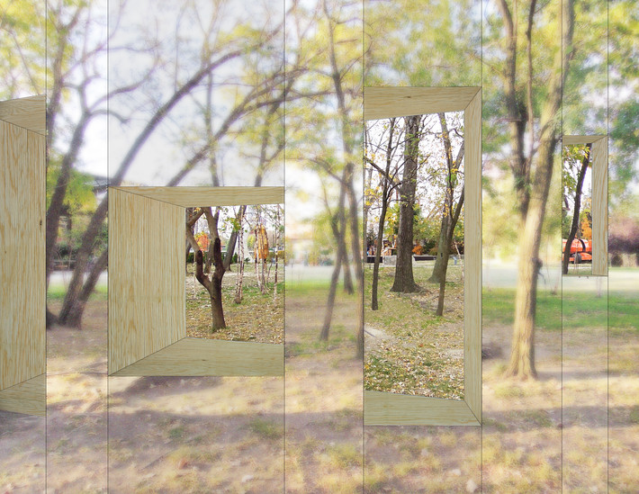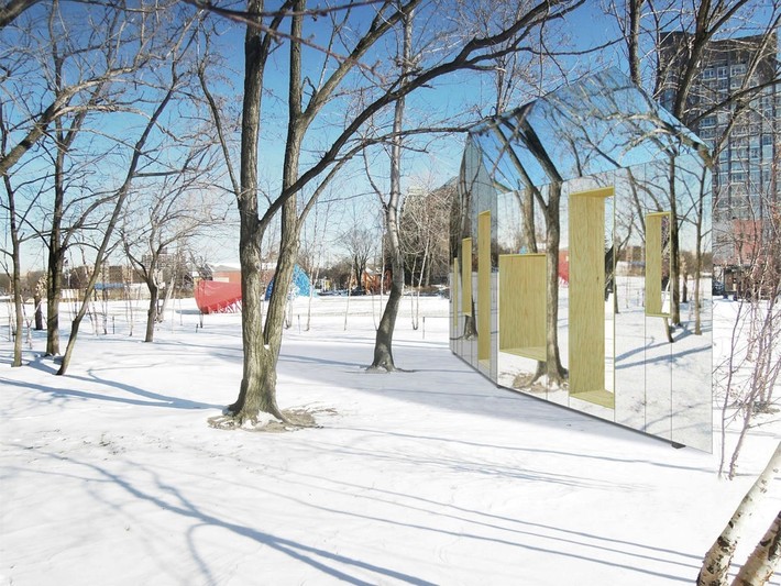 Нью-йоркская студия STPMJ представила проект, который сразу был отмечен на архитектурном конкурсе «Фолли-2014». Среди густо посаженных деревьев в роще парка скульптур Socrates в Нью-Йорке бюро предложило новую интерпретацию садово-парковых сооружений и павильонов малых форм, создав «невидимый» сарай, который по своей форме очень напоминает параллелограмм.