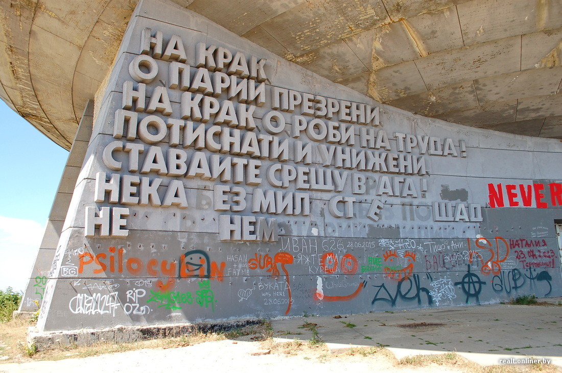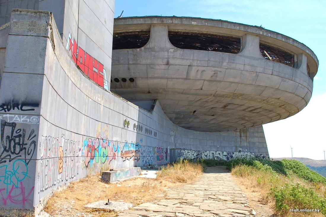 На одной из горных вершин в центре Болгарии возвышается поражающее воображение здание, похожее на огромную летающую тарелку. Дом-храм коммунизма, воздвигнутый в 1981 году, со временем превратился в одну из самых известных «заброшек» Восточной Европы. Некогда величественный монумент сегодня почти полностью разграблен, но все еще хранит лозунги и смыслы минувшей эпохи. История строительства и забвения грандиозного сооружения — в фоторепортаже Onliner.by.