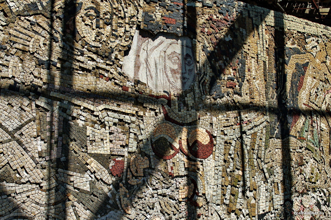 Некогда величественный потолок превратился в дырявую ржавую раковину, на которой от порывов ветра трепещут листы жести. «Пролетарии всех стран, соединяйтесь!»