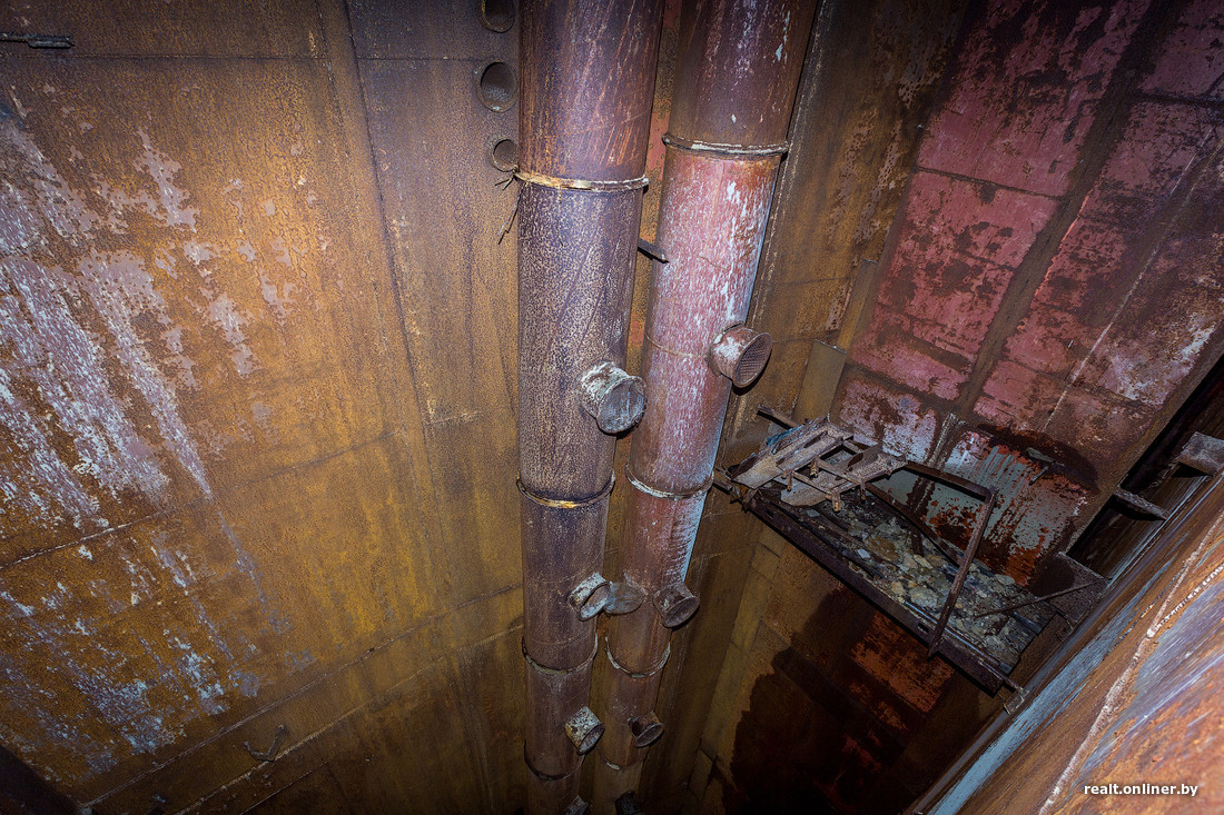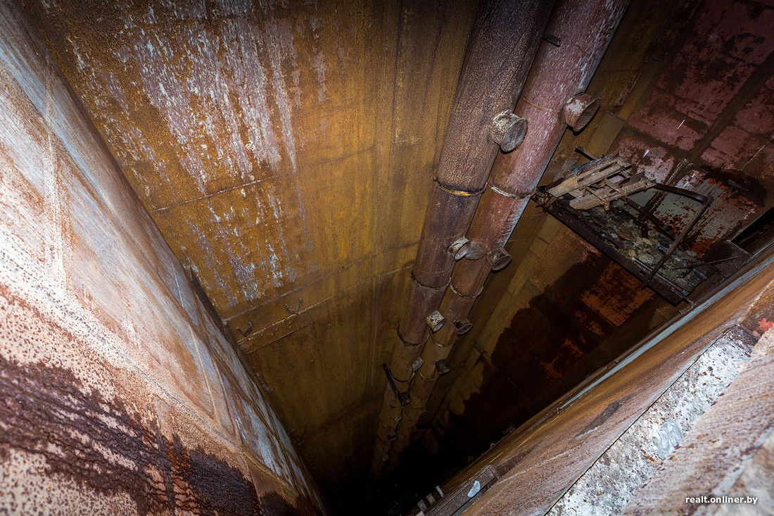Луч фонаря выхватывает в темноте глубокие шахты, о назначении которых можно только догадываться. Брошенный вниз камень летит почти 4 секунды и еле слышно плюхается в воду. Нижние уровни бункера затоплены.