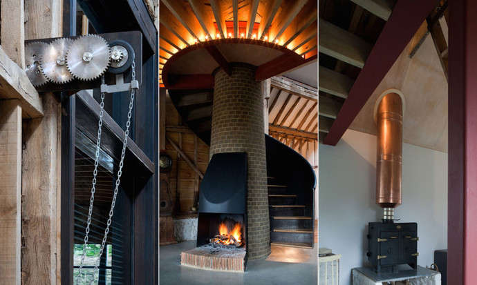 Специалисты студии Liddicoat & Goldhill сделали акцент на сохранении целостности старинной структуры, сообщает novate.ru. Старые дубовые доски были демонтированы, восстановлены и снова прибиты на место. Вся конструкция поддерживается стальным экзоскелетом и обшита теплоизоляционными материалами высокого качества.