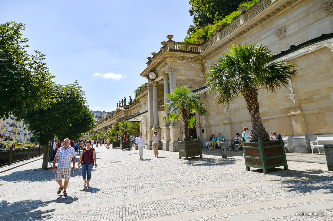 Порой кажется, что чешскую речь здесь услышать сложнее, чем русскую. Привычные уху словоформы мелодично журчат на набережной речки Теплы, объявления и вывески на кириллице назойливо смотрят прямо в душу с каждого столба. Лишь умопомрачительно прекрасное окружение, созданное лучшими архитекторами Австро-Венгрии, не дает забыть, что вокруг вовсе не Кисловодск в разгар летних отпусков, а Карлсбад — роскошный европейский курорт с историей, героями которой были Петр I, Гете, Тургенев, Фрейд, Мицкевич, Гоголь и множество других персонажей мировой политики и культуры. Оказавшись «на водах» в Карловых Варах, журналисты Onliner.by попытались разобраться, почему именно этот город умудрился превратиться в главный «русский» курорт Европы.