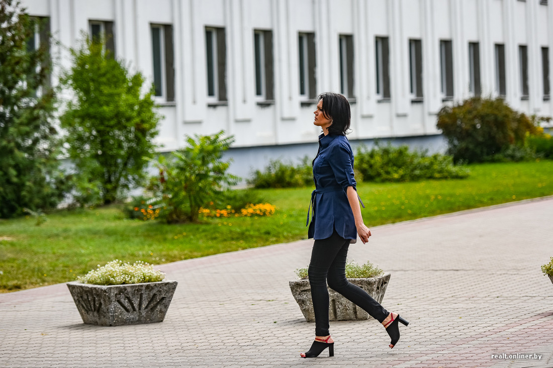 Мы выходим из двора и направляемся к школе, где учился будущий велоцираптор белорусского рока. Вновь проходим мимо кинотеатра.