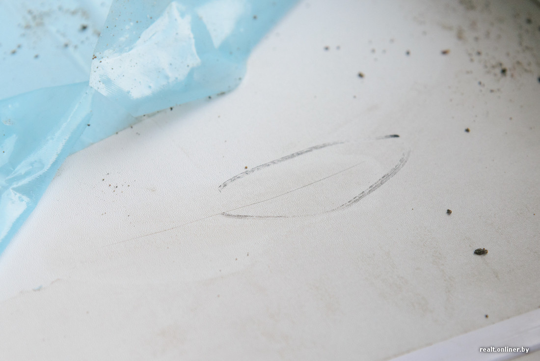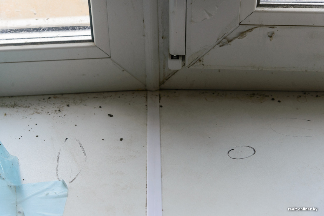 — Больших нареканий на состояние стеклопакетов нет: строители вовремя закрыли их пленкой, поэтому пороков совсем мало. Под замену пойдет разве что один экземпляр. С рамами и подоконниками ситуация чуть хуже: помимо загрязнений от стройматериалов, есть довольно большие царапины.