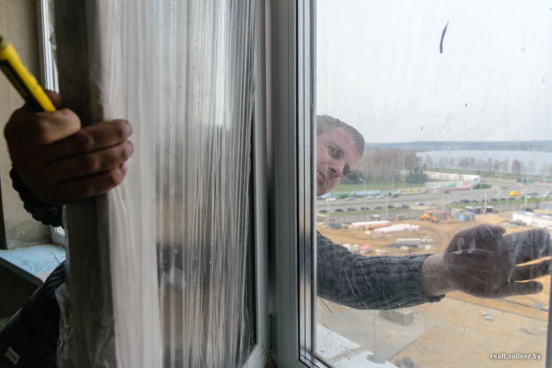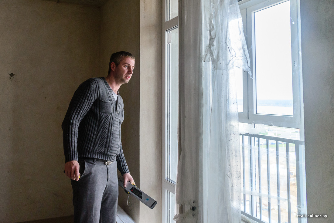 В не самый погожий весенний день в квартире на высоком этаже было темновато, перед окнами маячила высотка D3 (сейчас здание имеет совершенно иной, почти завершенный вид). Минчанин признается, что хотел смотреть на водохранилище, но не вышло: не удалось «вписаться» между соседними новостройками (уже имеющимися и будущими).