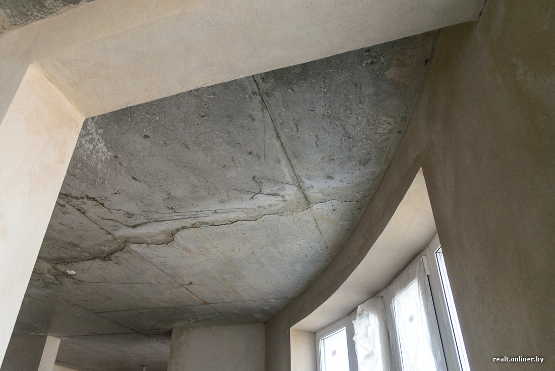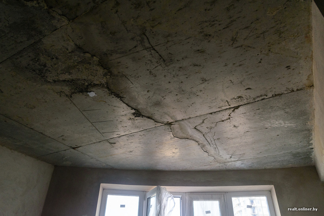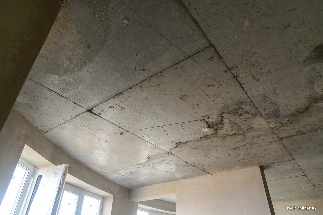 Предварительная приемка — как первое свидание: впечатление от увиденного останется с Дмитрием навсегда. При входе в квартиру минчанин в первую очередь обращает внимание на неаккуратность потолков, в некоторых местах (в частности, там, где должна была быть вторая лоджия) проглядывает пенопласт.