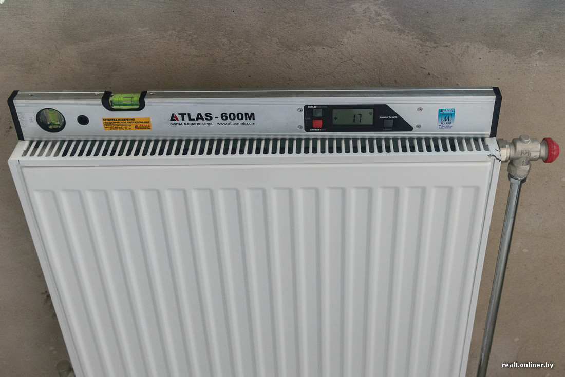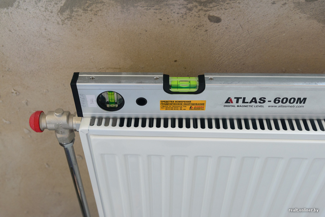 — На работу самого радиатора это никак не влияет, — уточняет Геннадий. — Да и исправляется недочет за считаные минуты: строители «подпустят» болты, выровняют, как надо, и зажмут обратно. Но это надо сделать сейчас, поскольку потом, когда вы завершите отделку, перекос может бросаться в глаза, а заниматься исправлениями, имея чистовой вариант, уже не с руки.