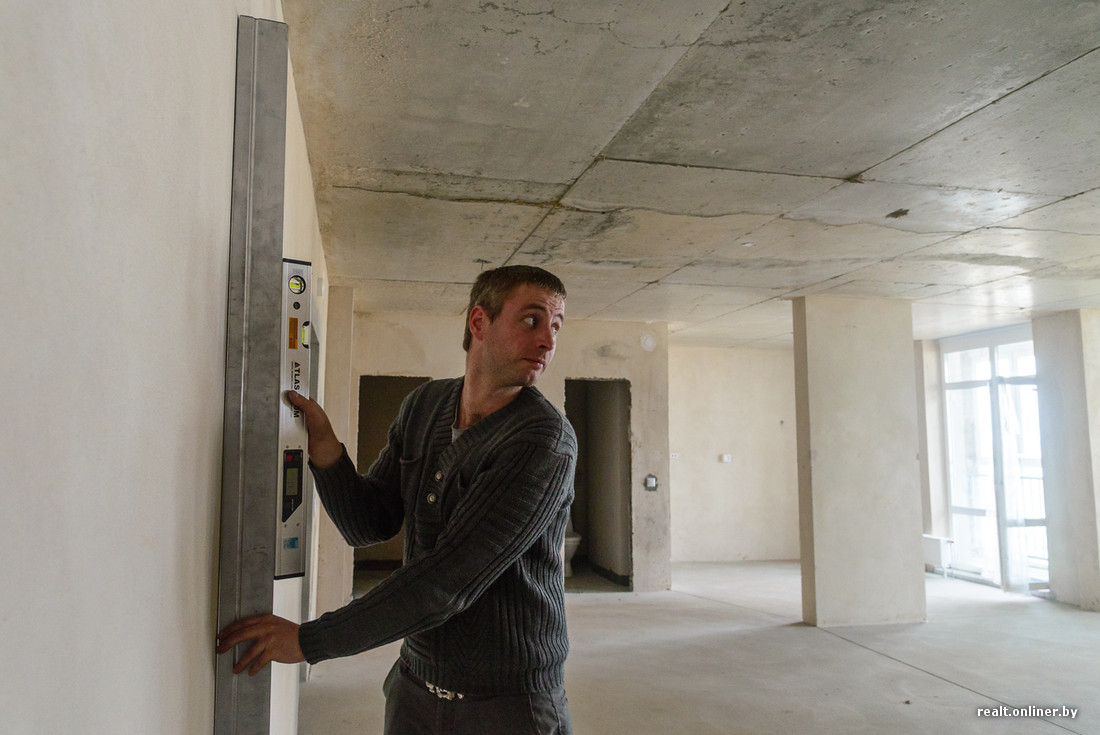 На предварительную приемку двухкомнатной квартиры минчанин Дмитрий пригласил нас еще весной. Задача — обследовать около 84 квадратных метров и вынести вердикт. Мужчина и сам уже отметил кое-какие недочеты, но хочет знать всю подноготную квартиры.