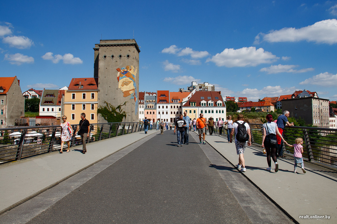 На одной стороне реки — обычный польский городок с маленькими склепами, многочисленными канторами, спешащей на службу в костел нарядной публикой и панельными многоэтажками. На другом берегу, всего в паре десятков метров — столь же типичный немецкий город. Католические церкви здесь неуловимо сменяются лютеранскими кирхами, пани превращаются в фрау, а на главной площади вместо бигоса можно откушать карривурст. Девять столетий он существовал как одно целое, чтобы в итоге стать очередной неочевидной жертвой Второй мировой войны. В 1945 году стотысячный населенный пункт был разделен между Польшей и Германией. Сейчас, уже в единой Европе города-близнецы Згожелец и Гёрлиц по-прежнему являются редким местом, где за пять минут можно запросто прогуляться из одной страны в другую и обратно. О сходстве и контрасте двух миров, страсти к ним в Голливуде и удивительной связи с Беларусью — в репортаже Onliner.by.