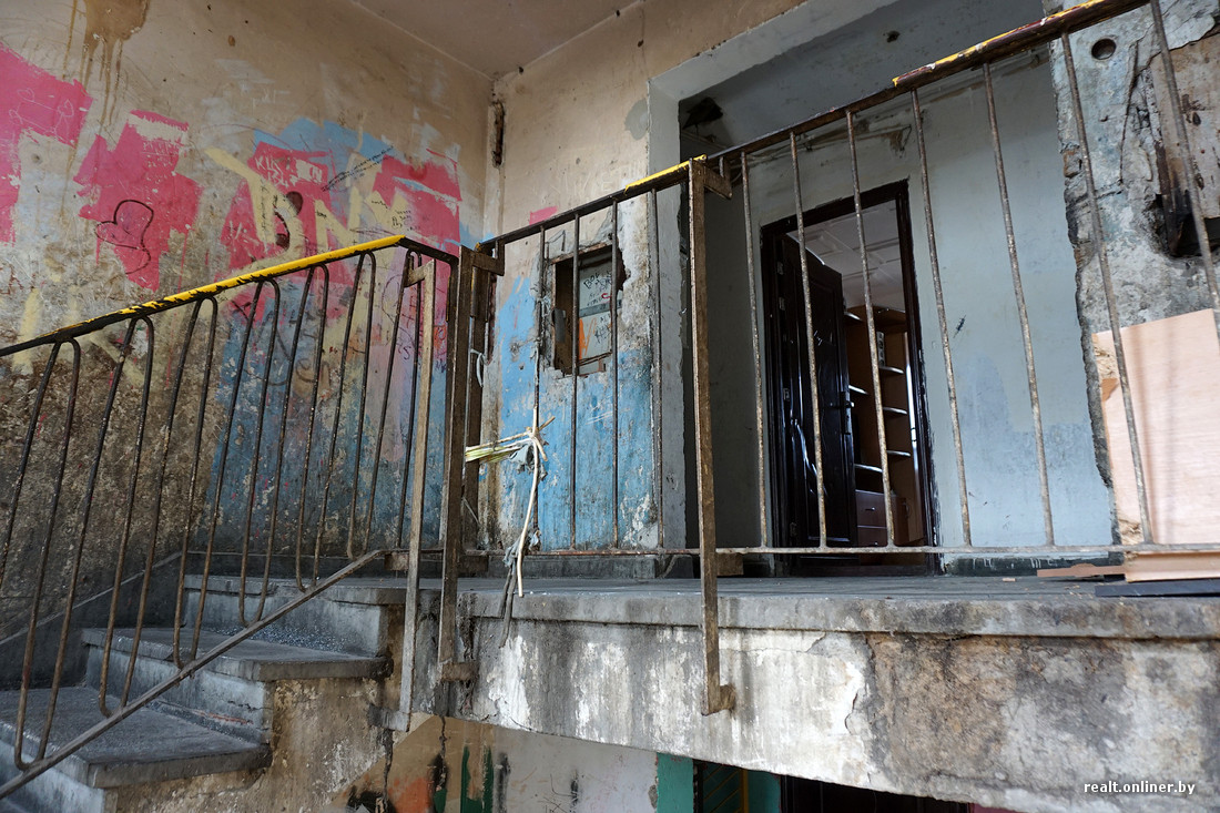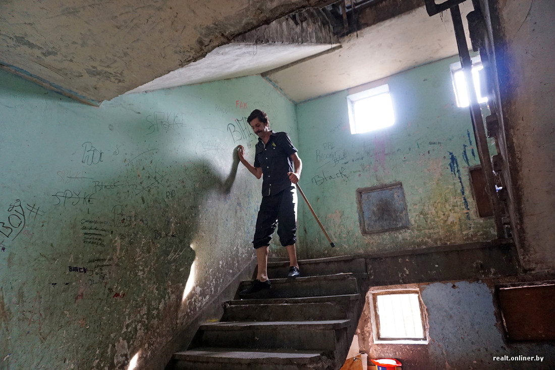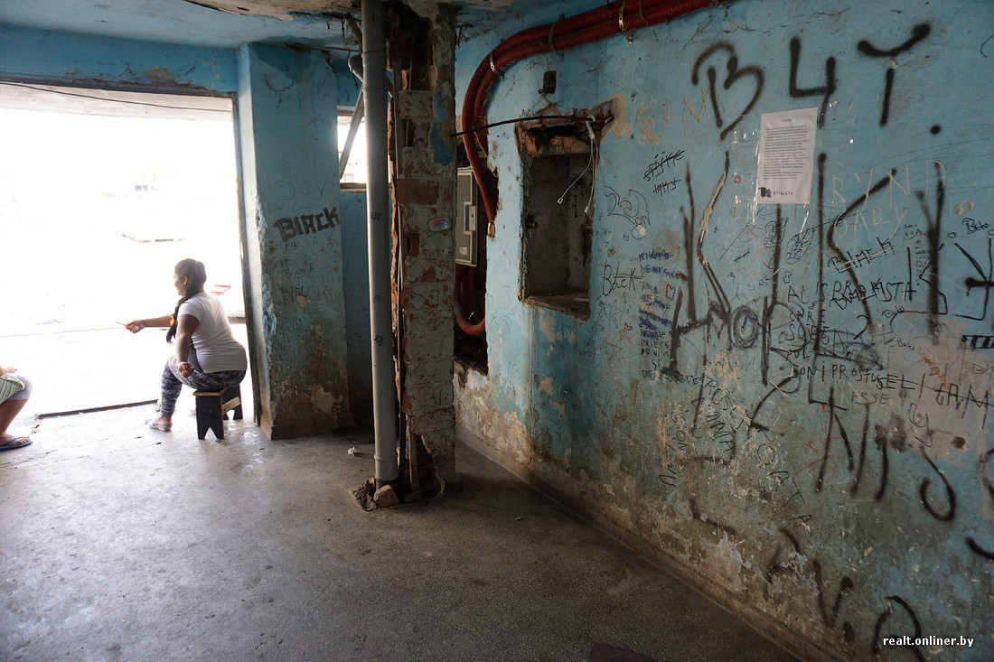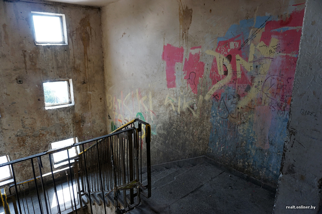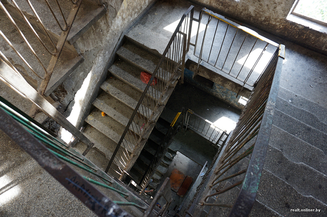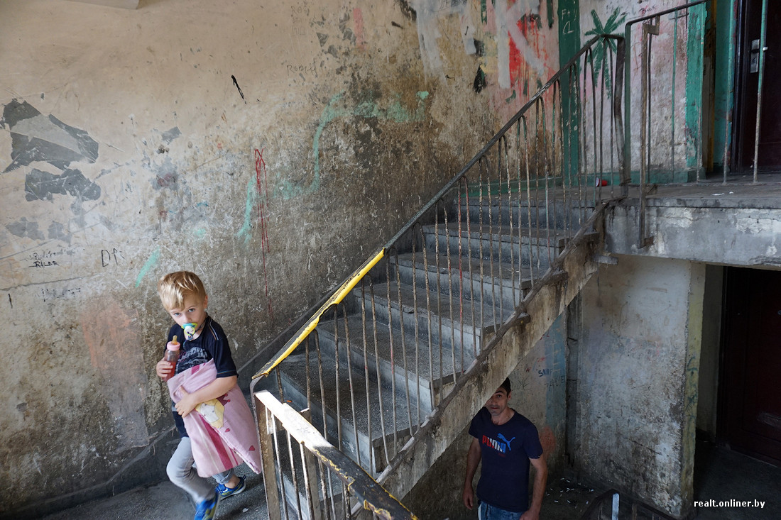 В самых запущенных домах нет подъездных дверей, на первом этаже отсутствует лестничное ограждение. Годами не мытые стены испещрены надписями, плевками и подтеками рвотных масс. Заходим внутрь и тут же замечаем наркомана — забившись под лестницу, он делает себе инъекцию куда-то в бедро.