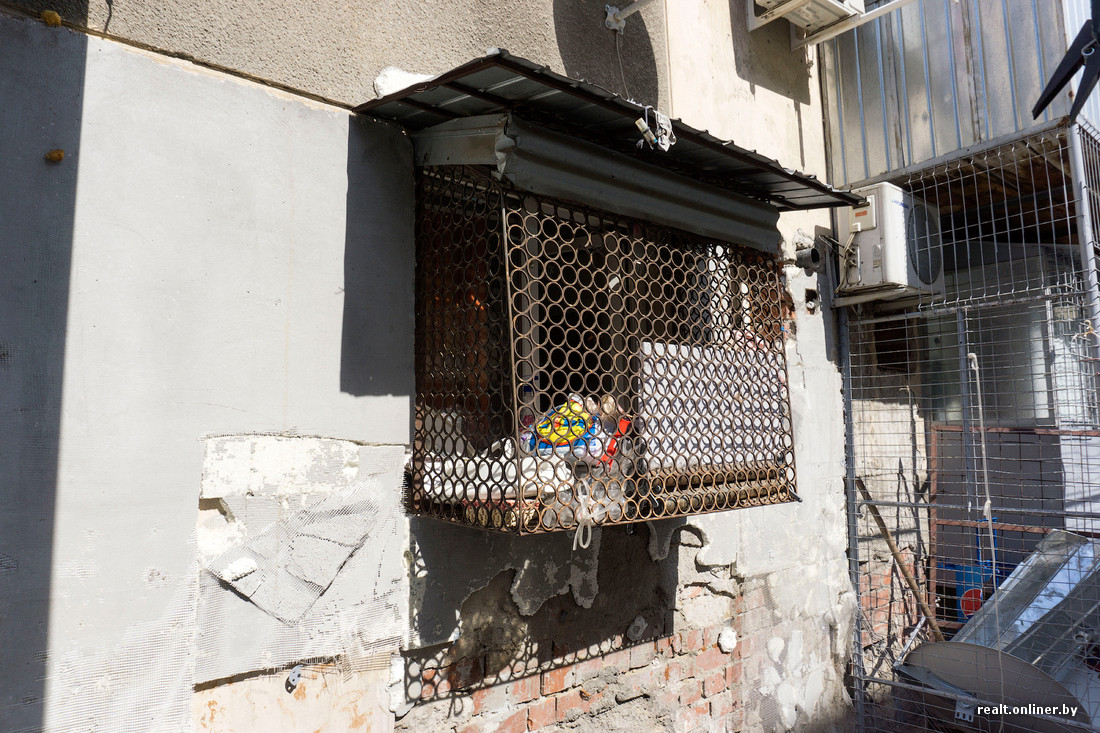 Большинство окон на первых этажах зарешечены. Теснота помещений и скученность вынуждают жильцов удлинять комнаты на несколько квадратных метров — фасады постепенно обрастают пристройками, похожими на скворечники.