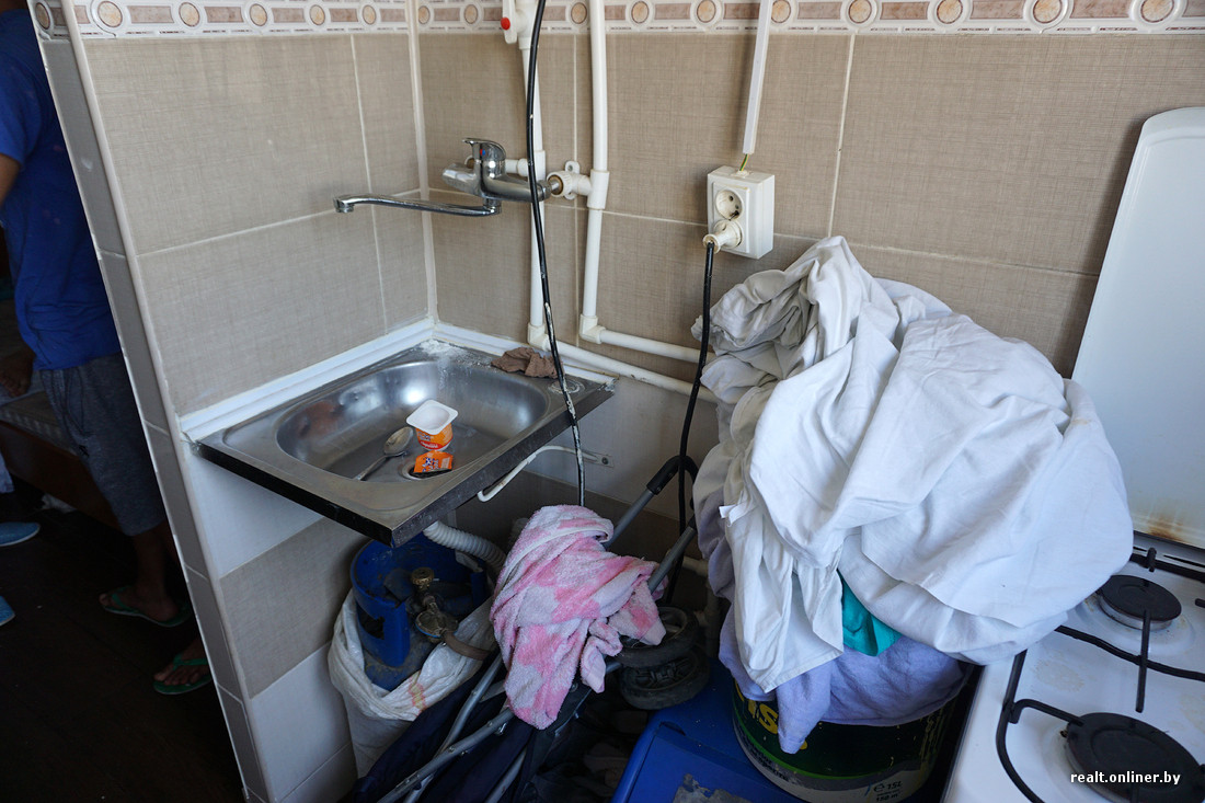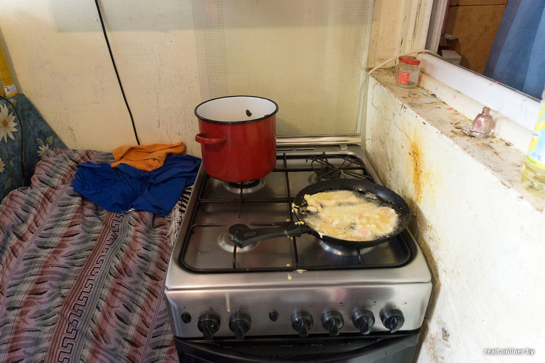 Некоторые пристройки являются не продолжением квартир, а отдельными изолированными помещениями. Нам удалось заглянуть в одну из таких пристроек, где живет многодетная семья, состоящая из семи человек. Непонятно даже, как они помещаются в одной комнате. Хозяйка замялась с ответом на вопрос о стоимости коммунальных услуг.
