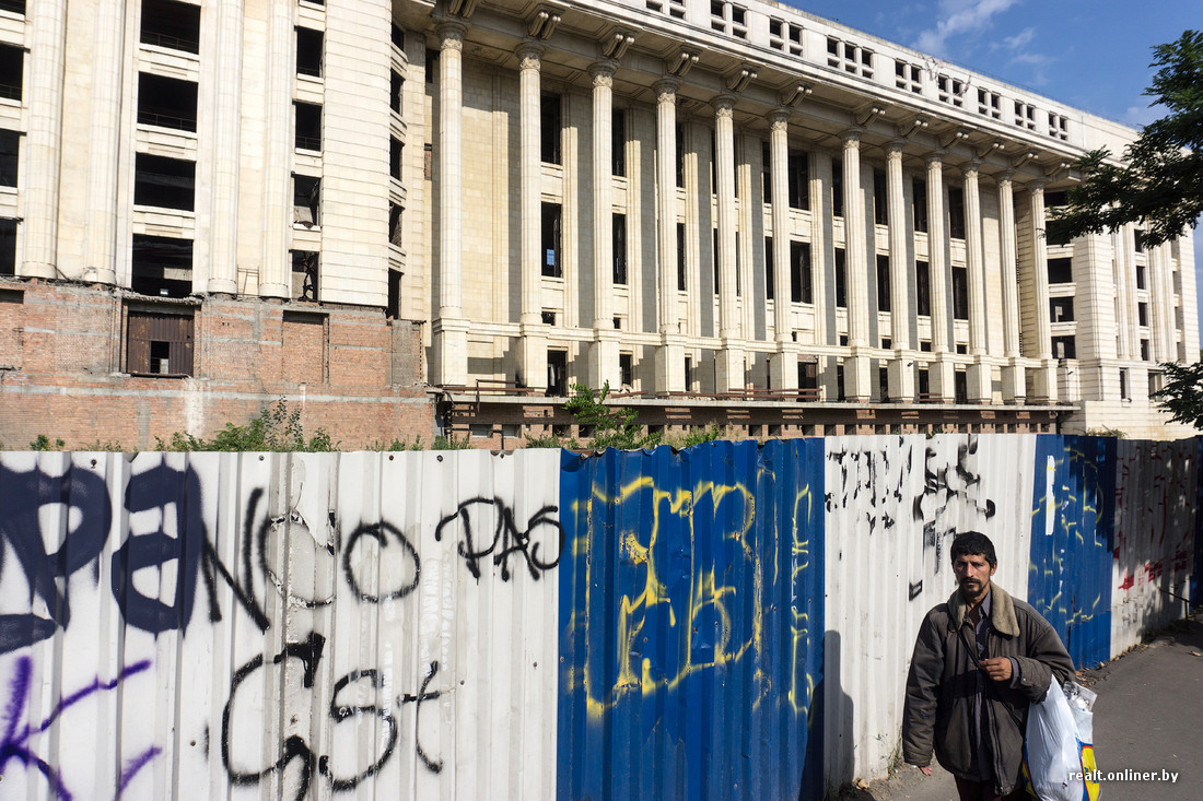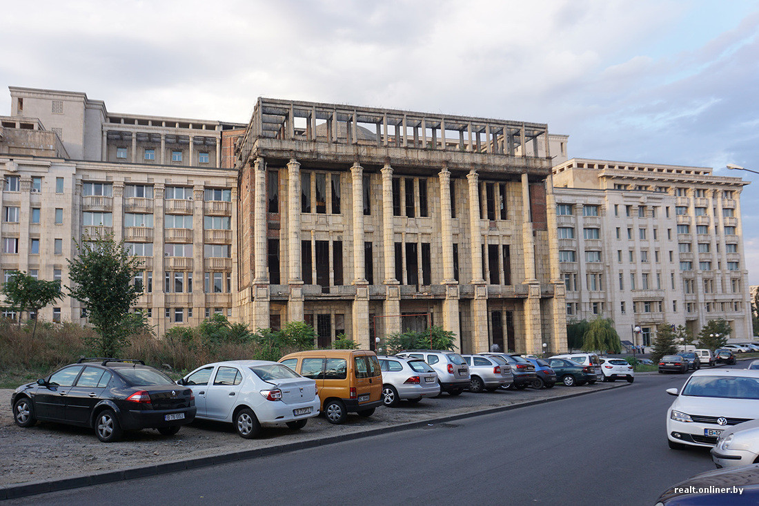 Еще одна стройка времен Чаушеску — Румынская Академия в центре города. Тыльная часть здания по-прежнему представляет собой печальное зрелище.