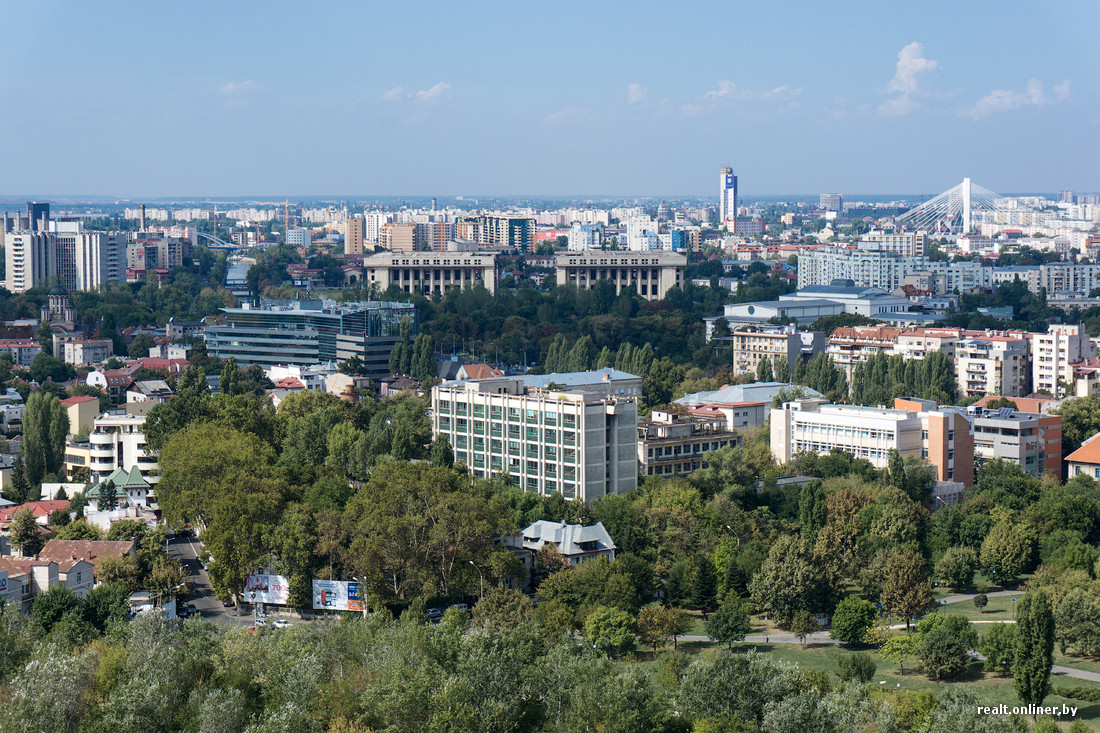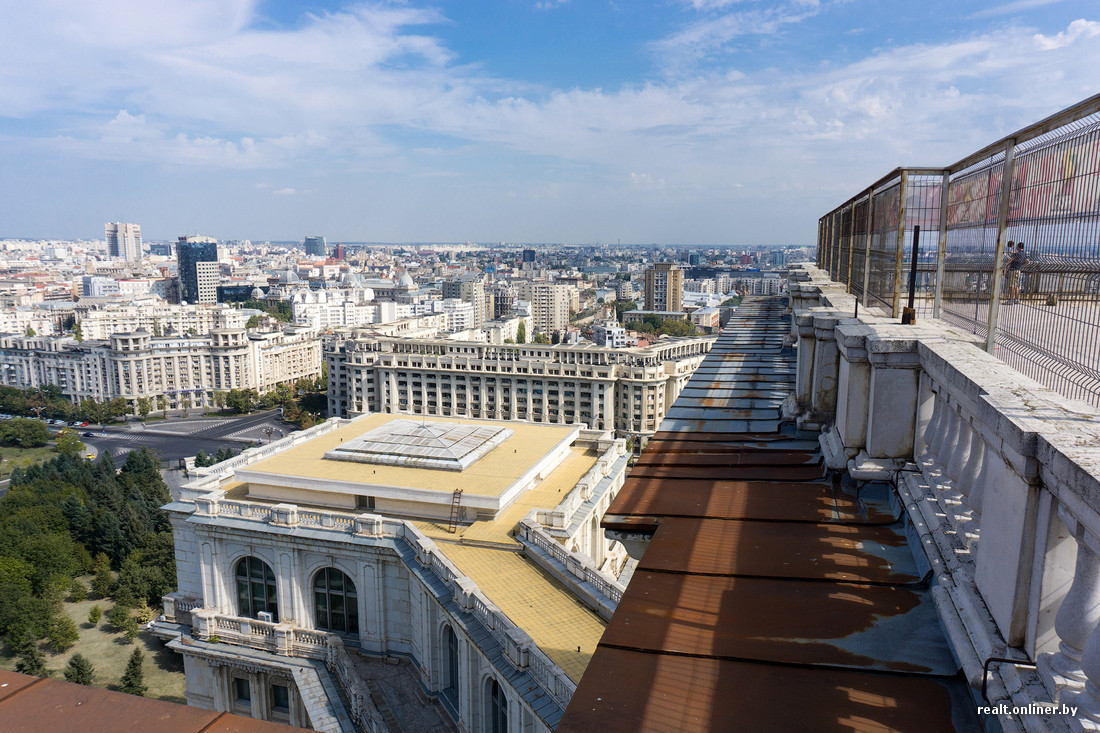 С обзорной площадки, расположенной на уровне 10-го этажа, видна половина Бухареста.