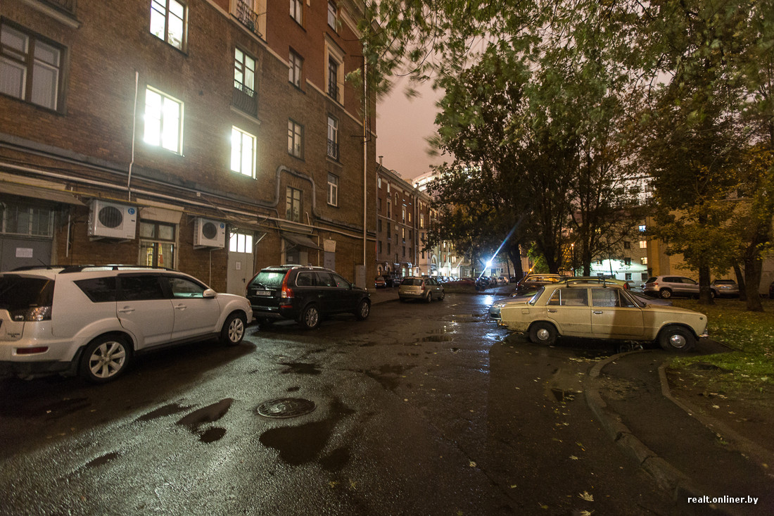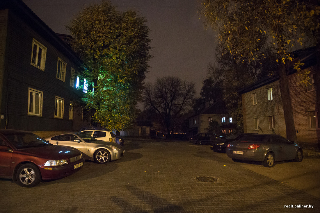 Ветер сбивает с намеченного пути, дождь хлещет по лицу, старая застройка с гаражами и сараями устрашает — так приветствовала нас минская октябрьская ночь.