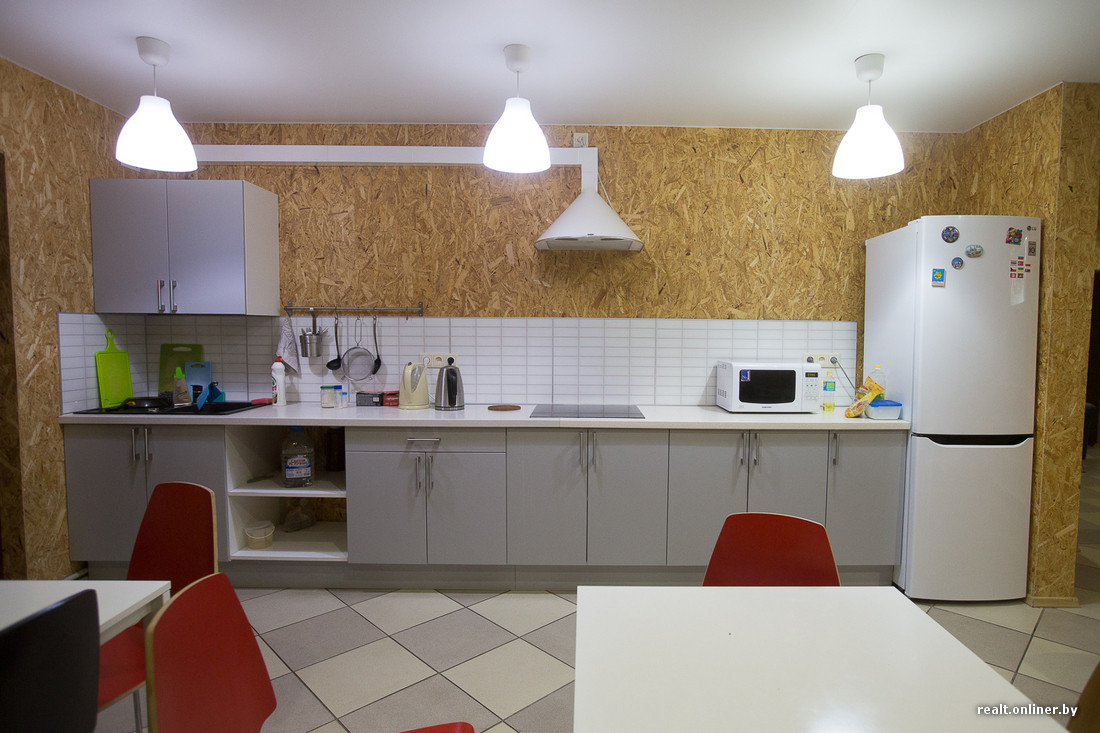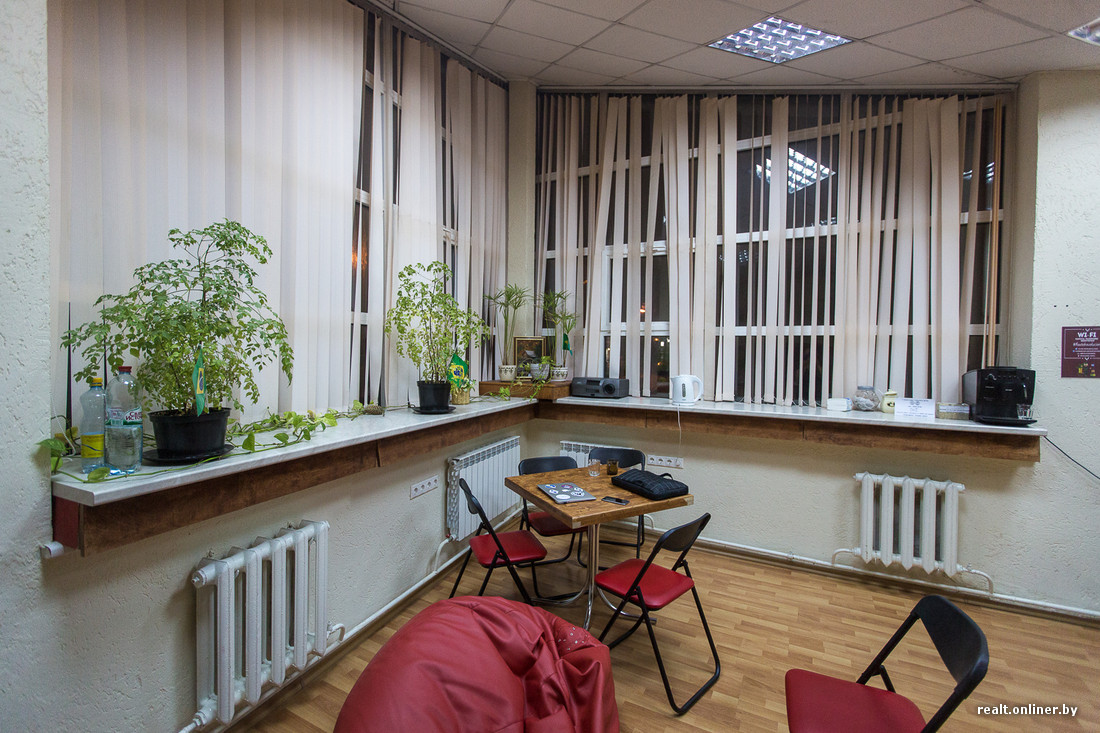 Кроме главного источника дохода — номеров, — в хостеле обнаружены небольшая кухня, несколько санузлов, душевых и даже комната отдыха. В последней предлагается посмотреть телевизор, почитать книги, поиграть в «настолки» и выпить кофе.
