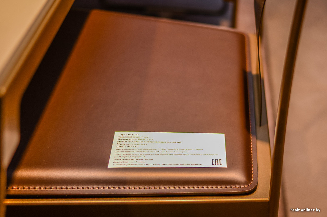 Металлические стулья с кожаной обивкой в исполнении дизайнера Константина Грчика оценены в 1087 рублей (510 евро).