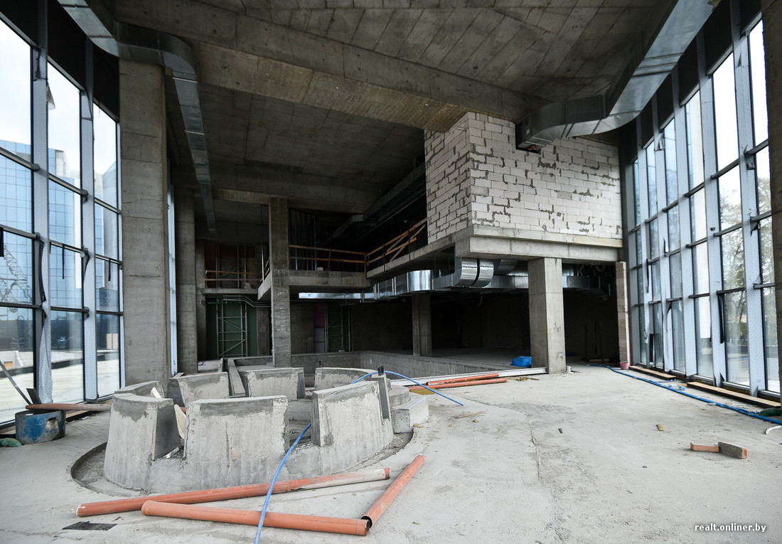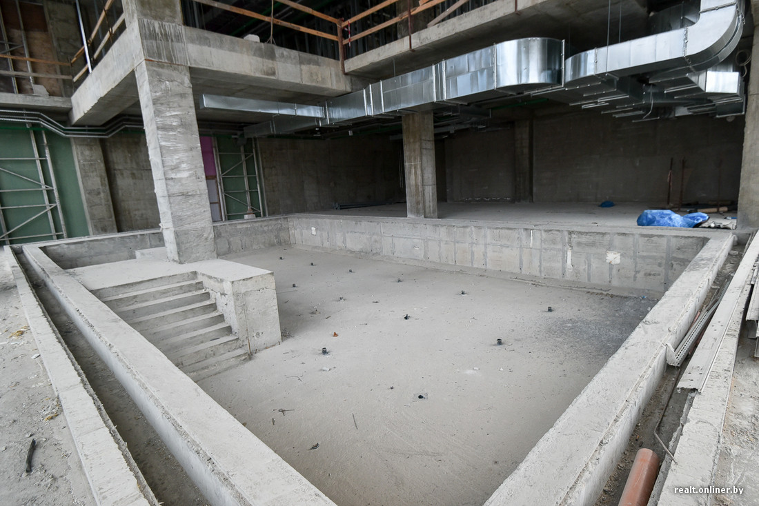 И вот на днях появилась новость: недостроенный пятизвездочный отель возле Свислочи выставлен на электронные торги. Имущественный комплекс площадью около 46 тыс. кв. м предлагают купить за $49 млн. Договорившись с организатором аукциона, мы смогли посетить стройплощадку и осмотреть здание изнутри.