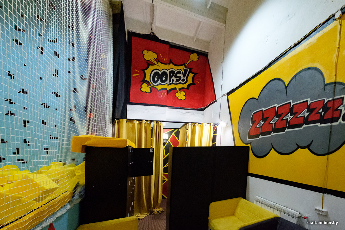 Когда-то помещение в здании на Короля, 2 было заводским складом и стояло без надобности много лет. Молодые люди вошли и увидели голый пол, голые стены, бетон и запущенное состояние. Лофтовые элементы было решено оставить и сочетать их с тематикой комиксов. С начала ремонта до его завершения прошло полгода.