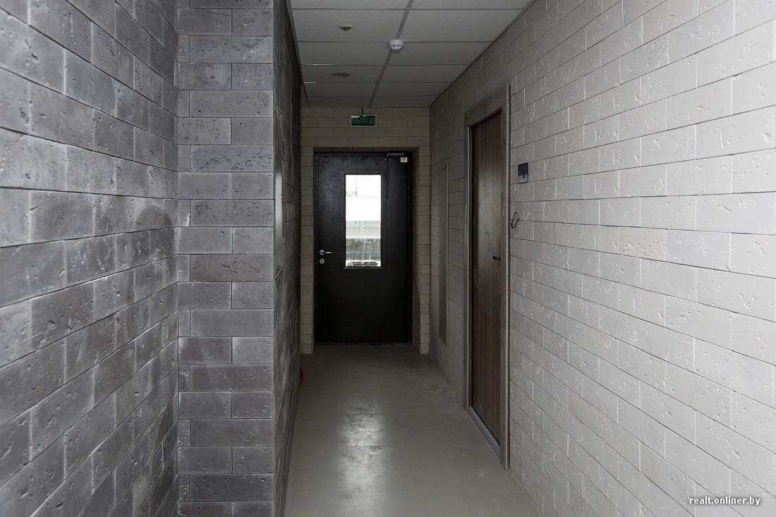 — Помещениям общего пользования мы уделили много внимания, — продолжает Иосиф Фридман. — Коридоры на всех этажах сделали одинаковыми — качественный пол, интересный потолок, стены отделаны декоративным кирпичом, который дает не только красоту, но и очень практичен в эксплуатации. Входные двери во все квартиры также одинаковые — капитальные дизайнерские изделия, которые, я уверен, люди не станут менять, потому что двери действительно хорошие и качественные, с отличными замками.