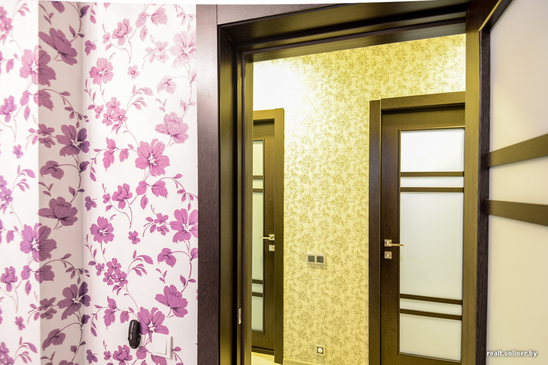 На очереди встали комнаты. За обоями ездили на рынок «Ждановичи», там же купили и карнизы. Перед установкой межкомнатных дверей пришлось повозиться с шириной проемов, так как старые двери были нестандартного размера. Мебель у нас в основном белорусская. Столы, правда, из Ikea. Сейчас потихоньку обживаемся.