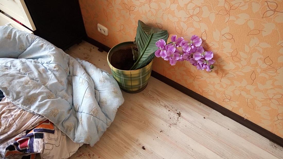 — Диван во второй спальне залили кофе и затерли землей. Мы вызывали химчистку, но даже она не смогла до конца вывести следы, — продолжает перечислять последствия «флэта» Елена. — Кровать тоже не пощадили, сломали основание. Одну из декоративных ваз разбили, вторую оставили всю в трещинах. На удивление не тронули телевизор: видимо, посчитали, что это уже слишком даже для них.