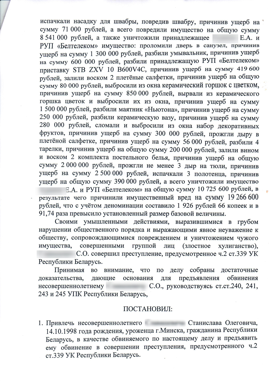 Onliner.by связался с главным (и пока единственным) обвиняемым во всей этой истории. Молодой человек теперь совершеннолетний, а значит, может (и должен) отвечать за свои поступки, пусть и совершенные в начале года. Главный вопрос — почему отдыхали и веселились минимум 14 человек, а по делу проходит только Стас?