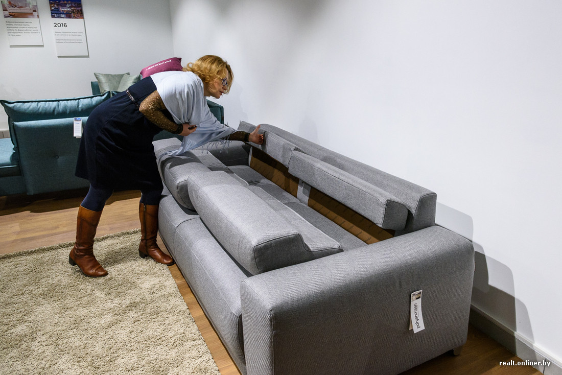 — Это качественная и долговечная скандинавская мебель премиум-класса. Производитель делает акцент на натуральных материалах и экологической безопасности. Например, такой момент: все швы проклеиваются гипоаллергенным клеем, — рекламирует диваны продавец.