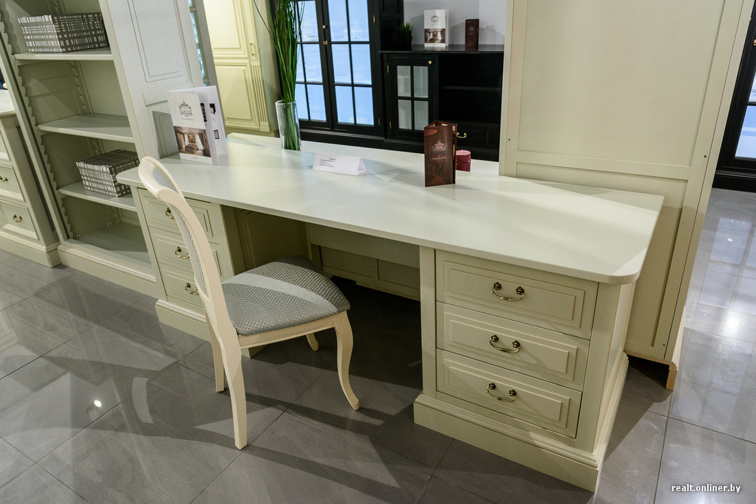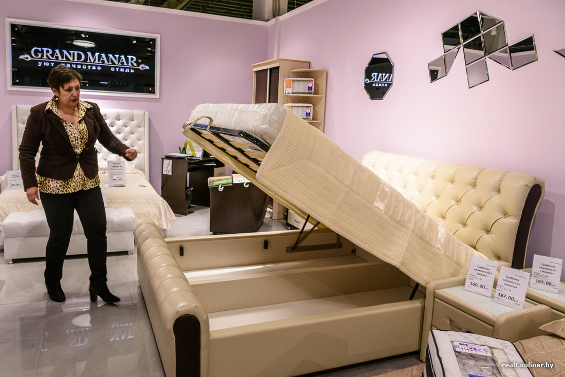 — Мы белорусское предприятие, производим эксклюзивную мебель из дерева уже 10 лет. Основной рынок сбыта — Россия, — поясняет продавец и знакомит нас с ценами на серийные модели.