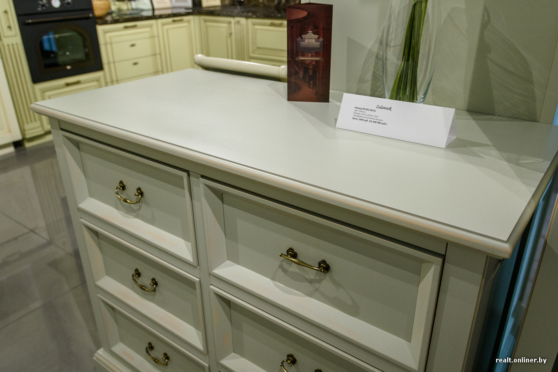 К примеру, кухня из массива с фисташковым оттенком фасада стоит $6,5 тысячи (без столешницы и встроенной техники). Белая кухня — $3,8 тысячи. Мебель по индивидуальному проекту, само собой, будет стоить дороже.