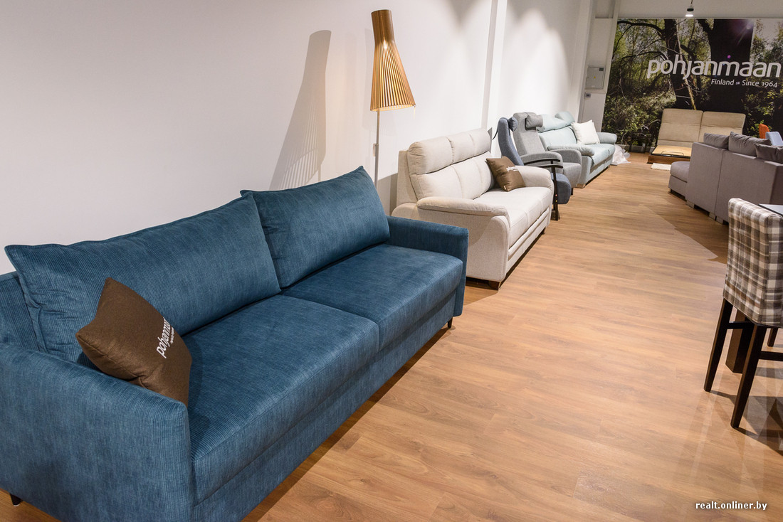Представлена в «Замок Home» и финская мебель. Выглядит стильно, стоит дорого. По словам продавца, цены на диваны начинаются от 3140 рублей.