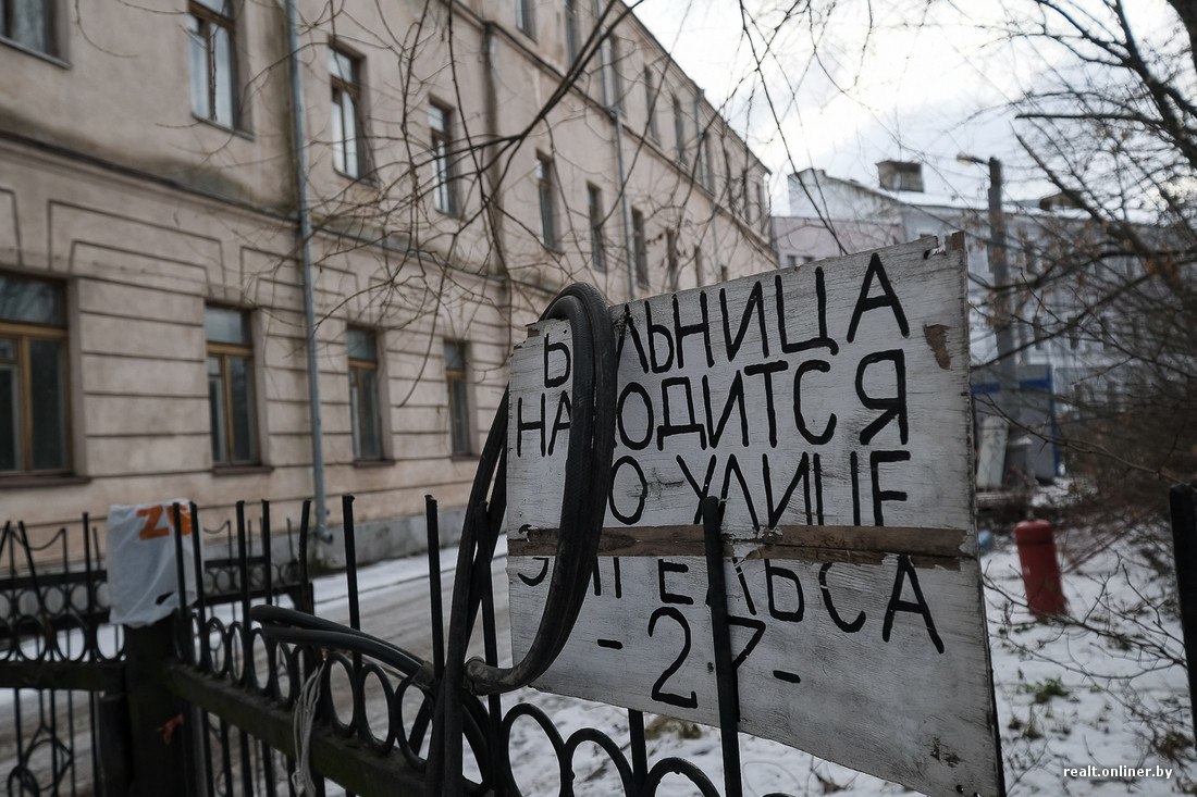 Больница напротив Троицкого предместья — одна из старейших в стране. Лечебное учреждение возникло на базе униатского монастыря в 1799 году. В 2012 году клиника переехала на улицу Энгельса.
