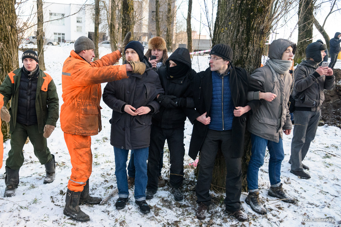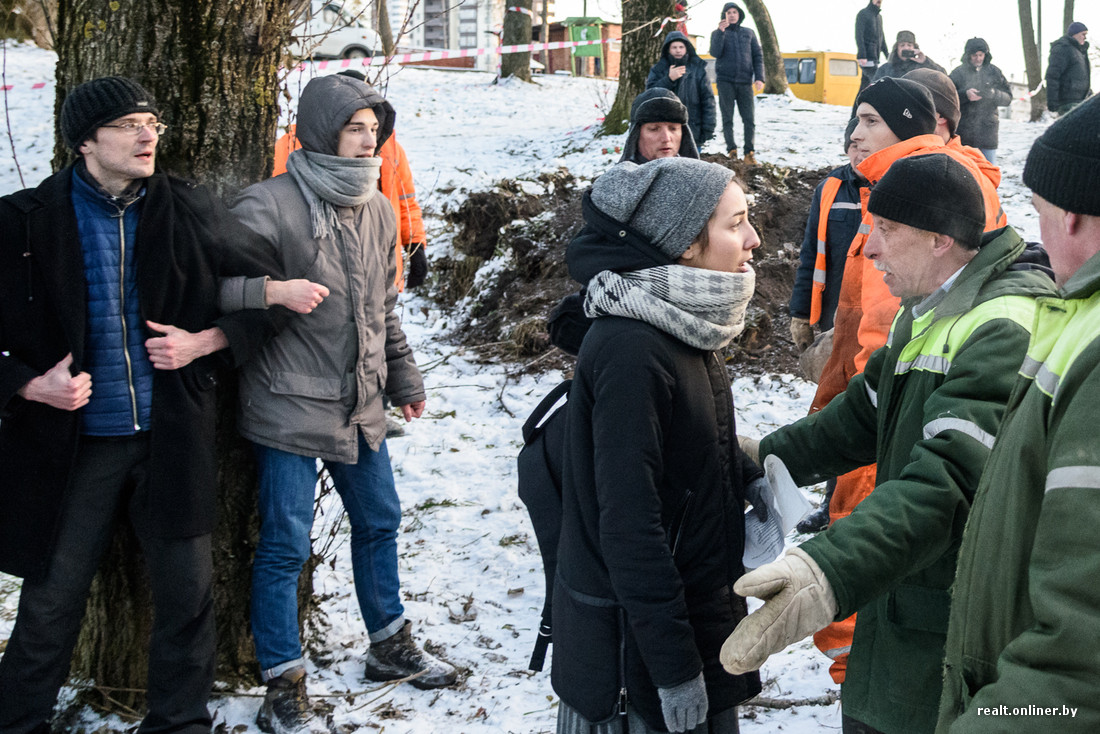 «Нет стройке!» — скандировали неутомимые активисты, которых не испугал даже мороз. Местные жители, яро выступающие против возведения костела, ссылались на доводы юриста одной из экологических организаций, специалист пояснила, что «проект детального планирования еще не прошел положенных экспертиз. Он не утвержден, следовательно, вырубка незаконна и не может проводиться. По еще действующему, старому плану данная территория является сквером, а строительство каких-либо капитальных объектов на территории скверов запрещено».