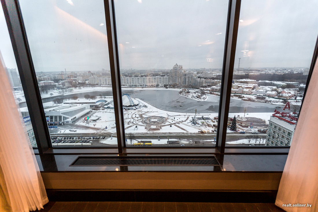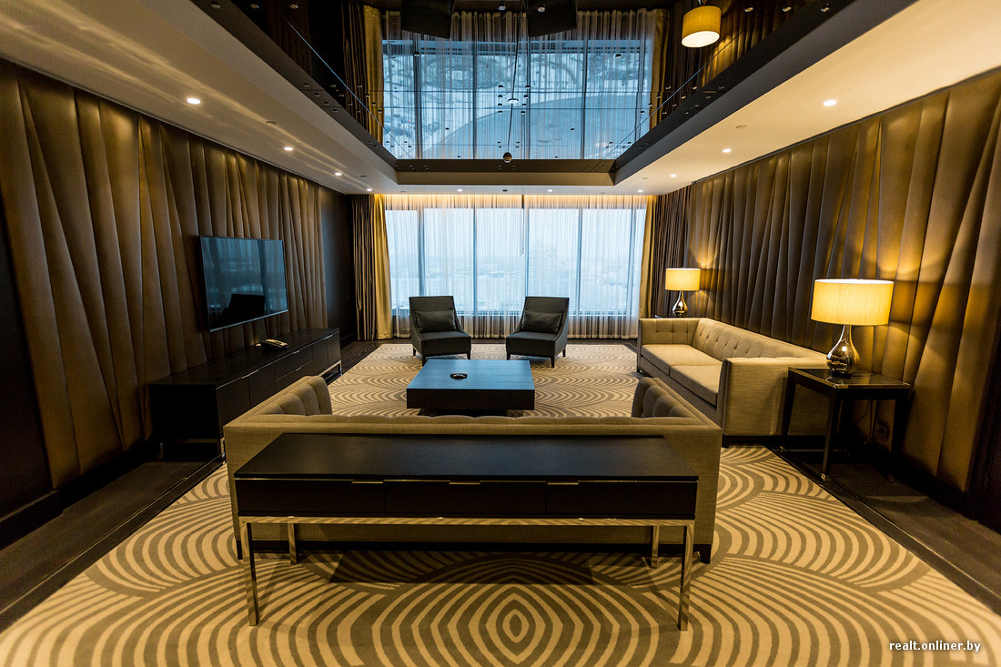 Президентский номер расположен в том самом стеклянном кубе, который выделяется на фасаде отеля. Кроме того, там расположены номера Ambassador и Diplomat. Сегодня президентский люкс можно снять за $1460.
