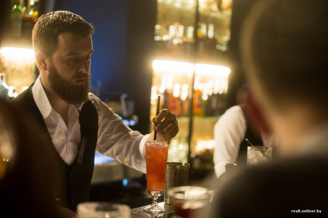 — Концепт — создание непомпезного гастрономического бара с европейской кухней, широкой картой коктейлей, вин и классического крепкого алкоголя, — рассказал Onliner.by руководитель нового заведения. — Всего в баре 58 посадочных мест, можно разместиться и стоя у барной стойки. Место мы выбрали неслучайно. Улица Революционная — якорная локация для определенной столичной публики. Хотим, чтобы тусовка в Верхнем городе разрасталась. К слову, через пару месяцев планируем открыть еще один бар — прямо по соседству с «Дельбаром».