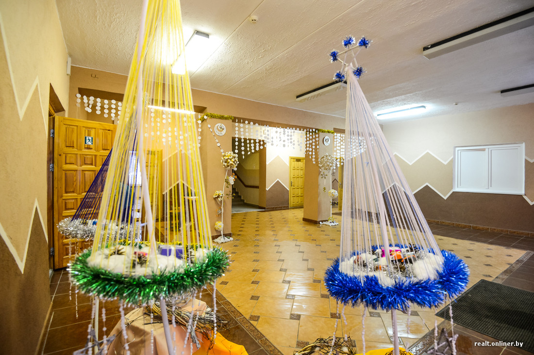В колледже, состоящем из трех корпусов и 13-этажного общежития, царит праздничное настроение. Разноцветные стены, которые до этого были отремонтированы и задекорированы руками учащихся (сторонних людей для выполнения строительных работ здесь принципиально не привлекают), украшены гирляндами, мишурой и прочей новогодней атрибутикой.