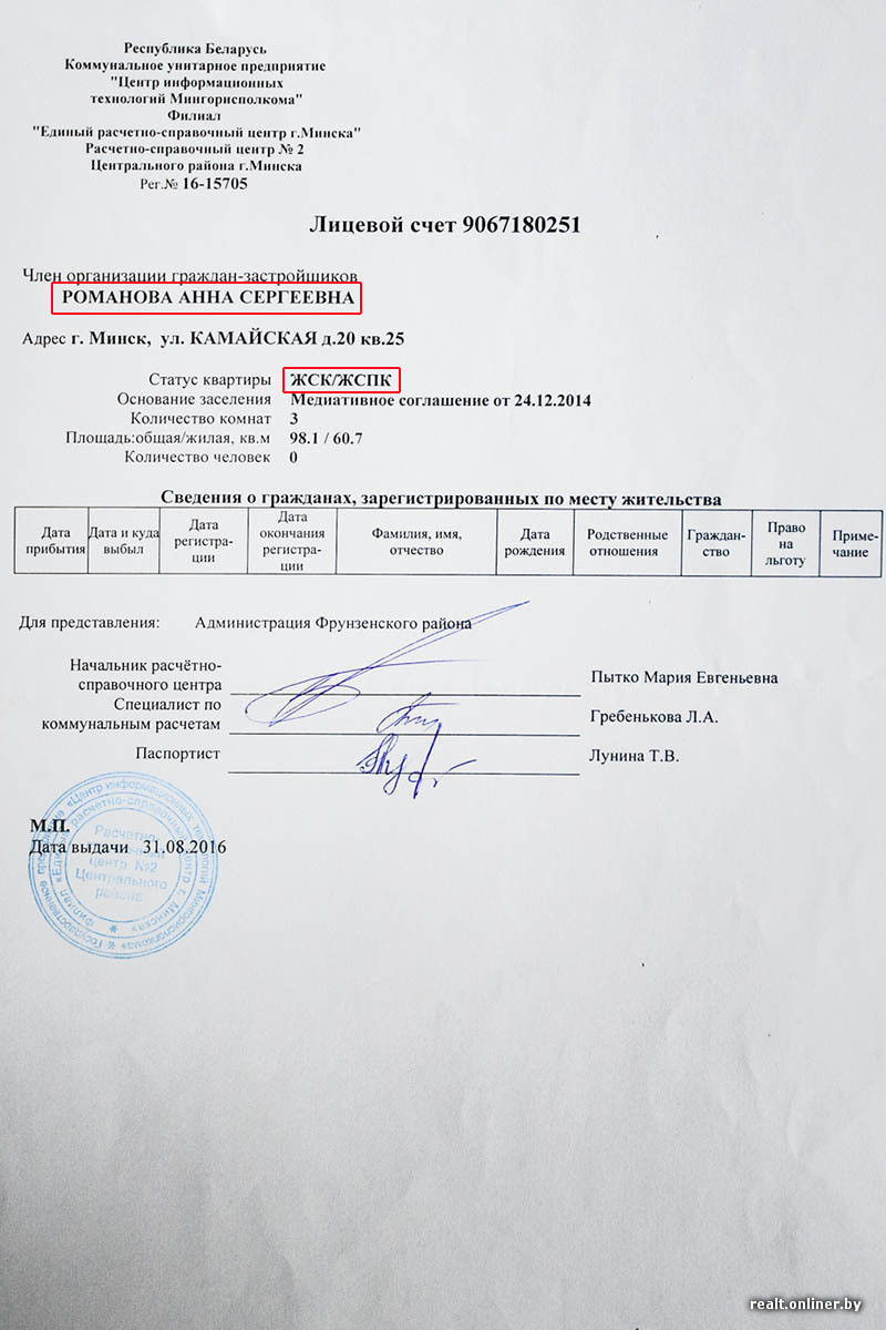 Я была более-менее спокойна. В одном из договоров четко сказано: «По незаселенным квартирам (отсутствуют зарегистрированные по данному адресу) исполнитель ежемесячно производит начисления за техобслуживание и жилищно-коммунальные услуги — по нормативной стоимости, утвержденной Мингорисполкомом, и выставляет счет заказчику в срок до 15 числа». В нашем случае заказчиком является ЖСПК №893. Почему тогда претензии ко мне? И ведь не заселилась в квартиру я не по своей прихоти, а по вине застройщика, который не торопится устранять недостатки! Получается, в месяц я должна оплачивать «коммуналку» дважды: в той квартире, в которой живу, и в той, в которой не живу.