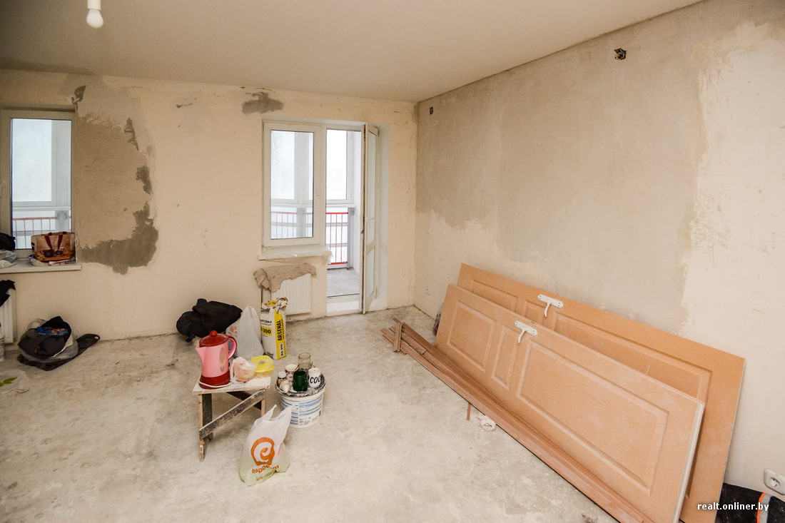 Попасть в свою — не свою квартиру минчанам действительно непросто: несмотря на то, что там слышны голоса, а в окнах периодически появляются курящие головы, открывать дверь без пяти минут хозяевам никто не торопится. Настойчивый стук в дверь не помогает: отделочники, которым, собственно, нет никакого дела до чужих тяжб и споров, просто выполняют свою работу и по понятным причинам не хотят вступать в лишние разговоры. У них есть задание сверху, а потому дверь закрыта на ключ изнутри и люди трудятся.