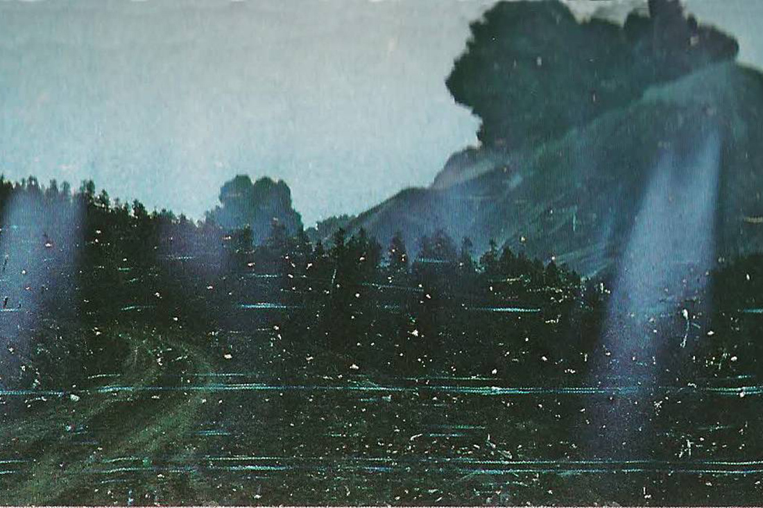 В течение апреля — мая Ландсбург неоднократно приезжал в окрестности вулкана, устраивая продолжительные пешие походы, во время которых он сделал множество снимков пробудившегося гиганта. Тот выплевывал в атмосферу газ и пепел, земля вокруг дрожала, гора готовилась. Ландсбург ожидал.