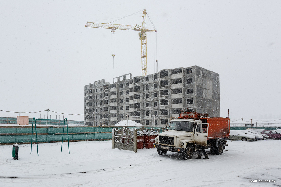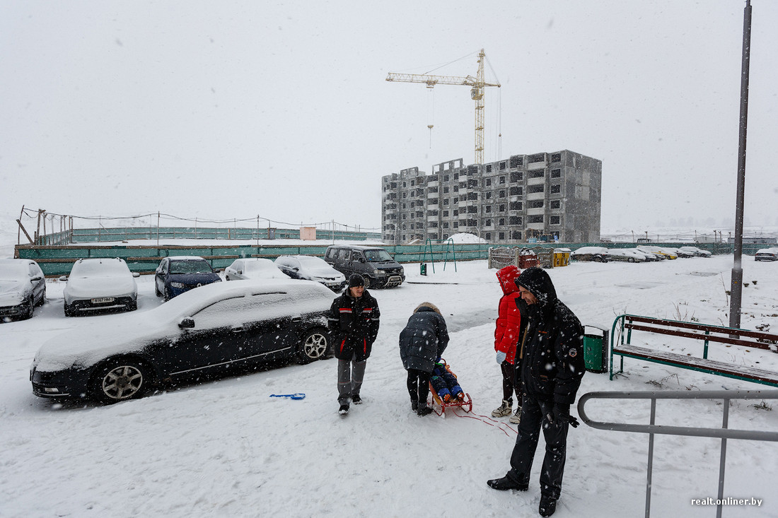 Жильцами первого и пока единственного «спутникового» дома в Смолевичах стали 142 минские семьи — очередники, простоявшие на учете нуждающихся по 25 лет или около того. Условия строительства были весьма заманчивые: 5,8 млн рублей за квадратный метр, льготные кредиты под 6—7% годовых. Причем банк кредитовал не 15, как в Минске, а 20 квадратных метров на каждого человека. «Да это, считай, даром!» — напишут комментаторы и будут почти правы. Только в нагрузку к своим просторным и дешевым квартирам минчане получили ряд проблем, не имеющих свойства разрешаться быстро.