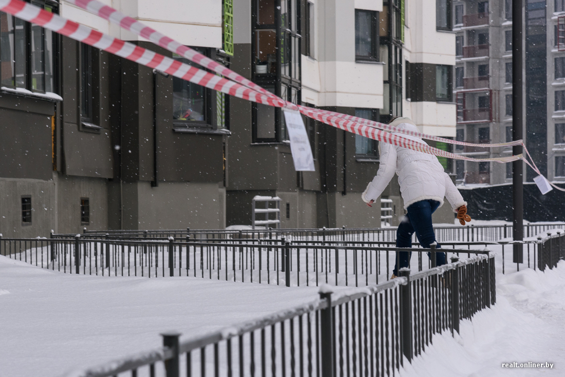 После случившегося перед домом повесили красную ленточку и табличку с надписью «Опасная зона».