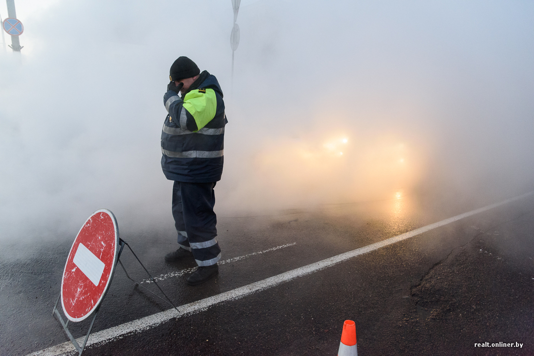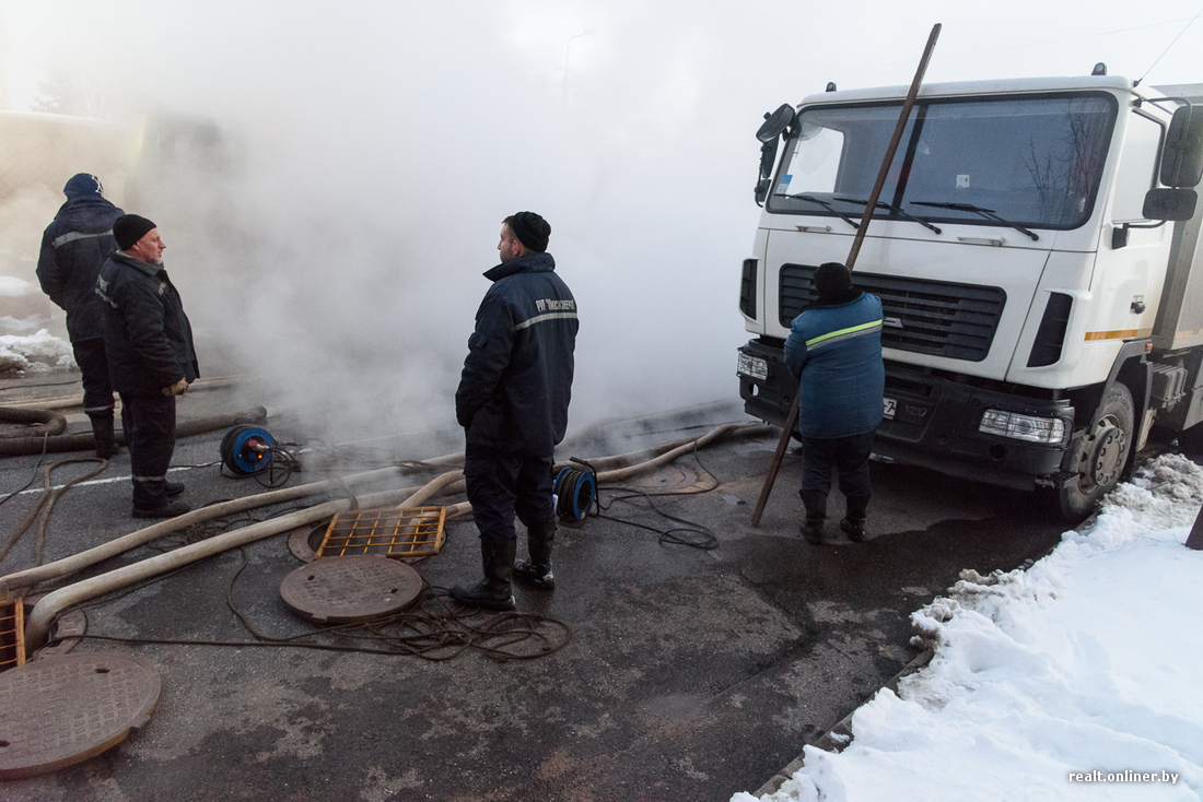 — Произошло повреждение тепловой сети. Повреждение значительное, но в скором времени оно будет локализовано, — объясняет заместитель главного инженера по эксплуатации Минских теплосетей Андрей Жешко. — Прорвало трубу, которая идет от систем отопления. Этот участок уже перекрыт, а квартиры в этом районе переключены на другие магистрали и другие тепловые источники, поэтому отключений не будет.