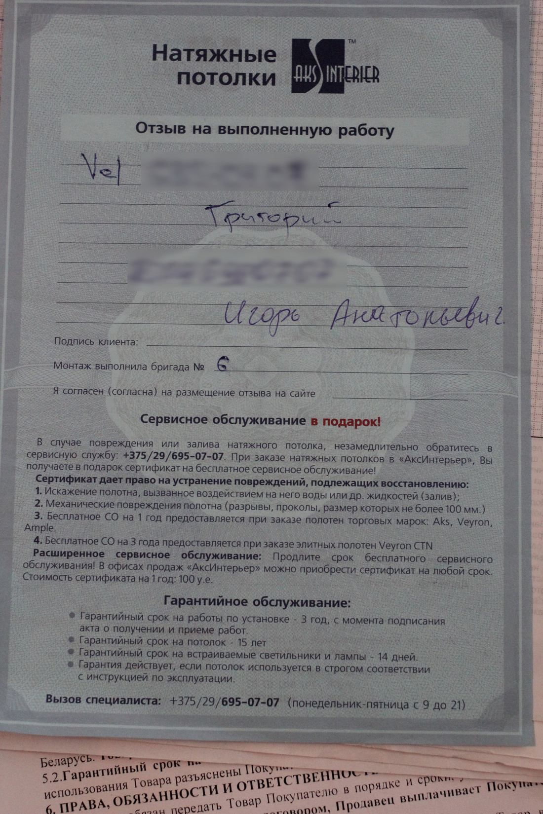 — В первую очередь приносим искренние извинения Виталию по сложившейся ситуации. Действительно, решение вопроса затянулось… По факту проверки претензии сервис-инженер дал заключение о наличии «воздушных потоков» в помещении — что служит причиной провисания потолка. Подобные ситуации редко встречаются и не попадают под гарантийные обязательства компании Aks Interier, так же как и претензии по факту выполненных работ после подписания акта приема выполненных работ. Тем не менее, с нашей стороны были приняты меры по устранению претензий заказчика, решение вопроса находится на стадии завершения. Еще раз приносим извинения за доставленные неудобства. Благодарим за понимание!