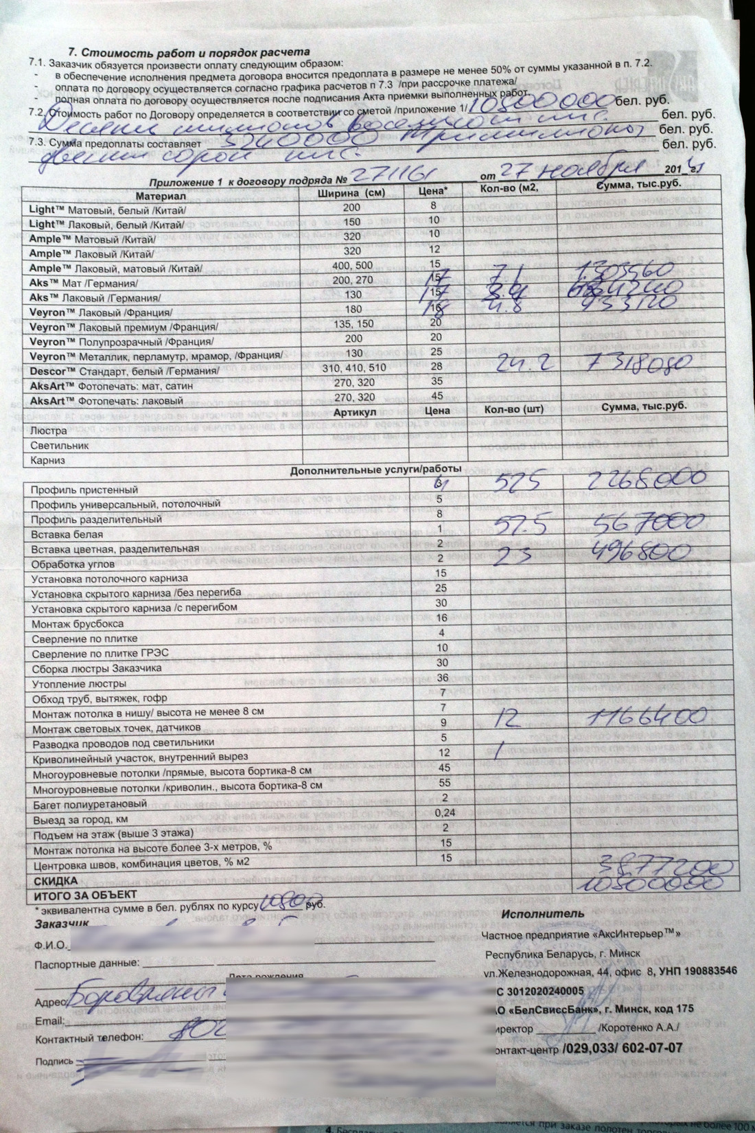 — Ремонт продвигался постепенно, — рассказывает Виталий. — И вот настал этап, когда надо было делать потолки. Решил не экономить: выбрал известную фирму, которая внушала доверие, и заключил с ними договор. В комнату заказал немецкий тканевый бесшовный потолок (только он стоил $400 в эквиваленте), в остальные помещения — попроще. В целом мой заказ «потянул» почти на $1000 по курсу 2014—2015 годов. Еще до начала монтажа предупредил рабочих: я сам строитель, поэтому за качеством буду следить.