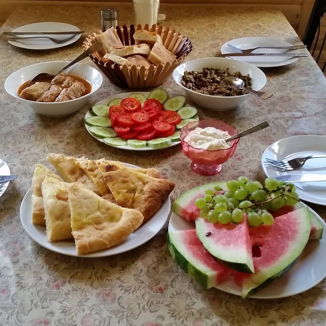 — Еду для гостей хостела готовят местные женщины, две сестры. Готовят местную грузинскую кухню из натуральных продуктов, используют свежий домашний сыр, молоко, овощи и фрукты. Очень вкусно. Хинкали подаем редко, потому что женщины Сванетии не готовят это блюдо. Часто предлагаются аджабсандал (овощное рагу), толма (блюдо, похожее на фаршированные перцы), хачапури кубдари (местное сванское блюдо с мясом, похожее на хачапури, но без сыра и творога).