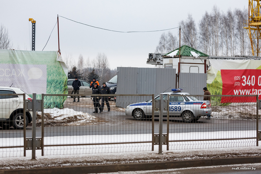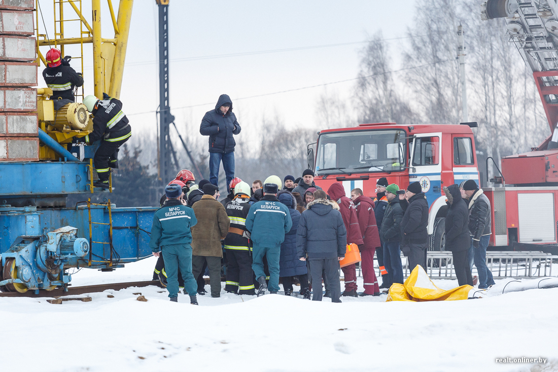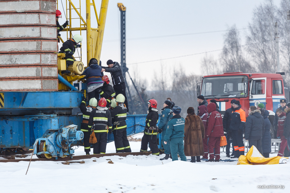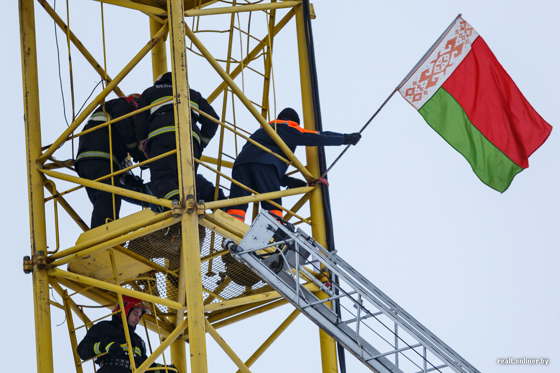 Меж тем ситуация развивается: только что несколько сотрудников в форме МЧС (11:18) и два человека в форме строителей поднялись на кран к замерзшей и уставшей женщине. Как выяснилось позже, специалисты заметили, что женщине стало плохо, и решили подняться. В форме строителей оказались сотрудники ОМОН ГУВД Мингорисполкома, передает ГУВД Мингорисполкома.