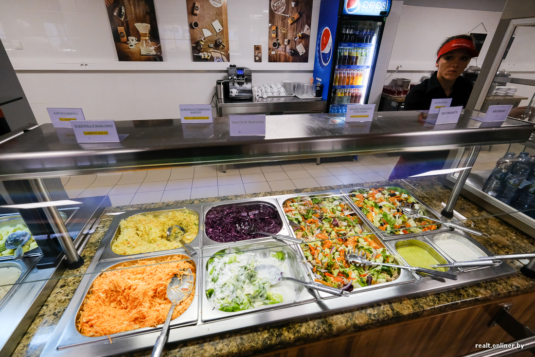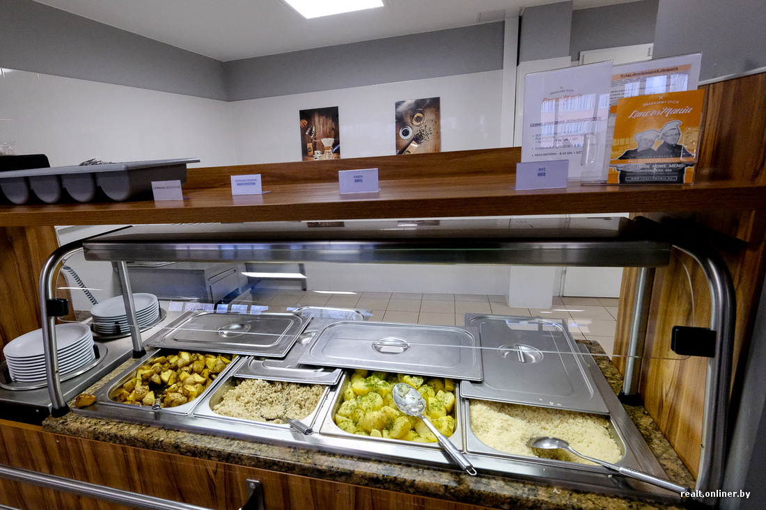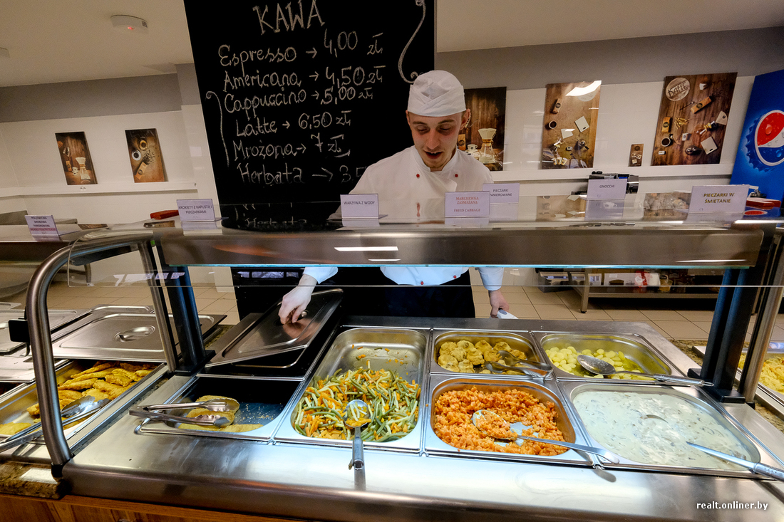Вузовская столовая позиционирует себя на уровне обычной городской кафешки. С виду и по рассказам студентов так и есть. Есть меню дня и скидки, если берешь комплексы. Блюда продают на вес, а пообедать при желании можно за 10—15 злотых. Кофе, правда, дорогой.